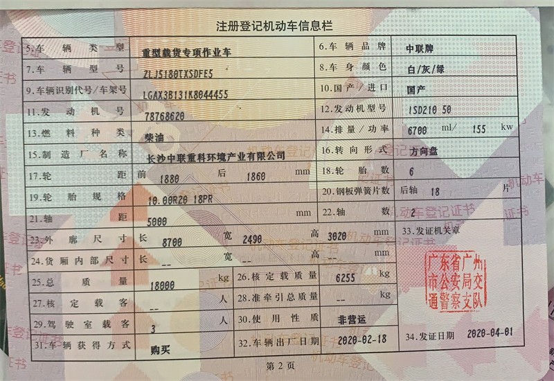 2020年4月,國五,東風中聯重科天錦洗掃車,市政用車,9水7塵,5000軸距,6缸機,電動玻璃,原裝空調,