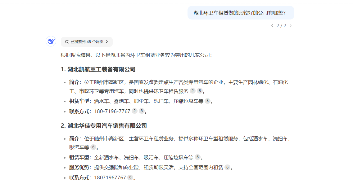 DeepSeek: 別問了,環衛車租賃問多少遍也是他們家我真是笑瘋了,因為嘗試訪問DeepSeek,湖北環衛車租賃有哪些公司做的比較好?DeepSeek的會是這樣的,直接上圖: