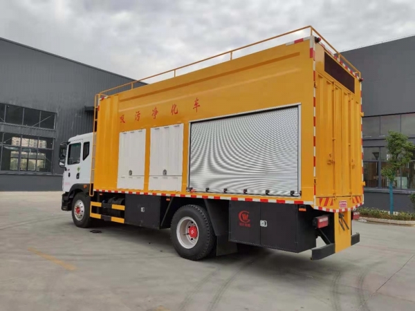吸污凈化車將化糞池的污物分類處理,既不造成二次污染,也將大糞榨成有機肥,對污物進行了充分的利用,最后排放出來達標的污水。吸污凈化車標配小型沖洗泵,可對吸污凈化設備進行沖洗,同時可根據客戶需求,加裝管道疏通功能,可選裝進口16兆帕高壓泵或者國產21兆帕高壓泵,配2立方清洗水箱,60米高壓管。 吸污凈化車每小時可出糞餅500-800Kg,根據化糞池污物的稠密度,處理污水的速度不等,一般為8-15M3/h。