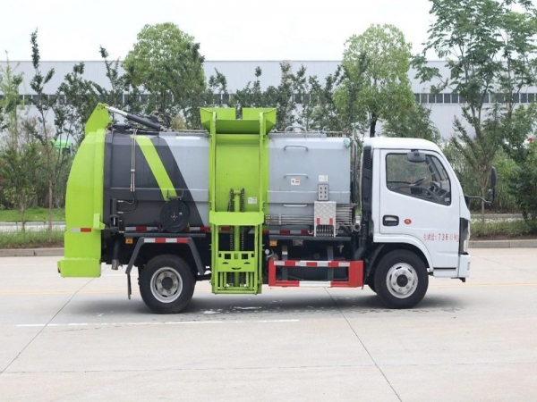 餐廚垃圾車,又稱餐余垃圾車、余廚垃圾車或者泔水車,餐廚垃圾車是垃圾車中的一種,是用于收集和運輸生活垃圾、食品垃圾(泔水)專用車輛。上裝由箱體、后門總成、后門開啟機構、密封鎖緊機構、推板機構、掛桶提升機構及操縱機構等組成。有裝、卸垃圾自動化程度高、工作可靠、密封性好、裝載容積大、操作簡便、作業過程密閉,無污水泄露和異味的散發,環保性好等特點。餐廚垃圾車不僅優化了居民居住的環境衛生,減少了空氣中的餐廚垃圾臭味,減少孳生蟑螂、細菌的可能, 改善了環衛作業環境,減少垃圾的四處分散造成的污染。