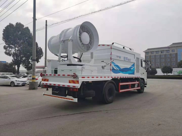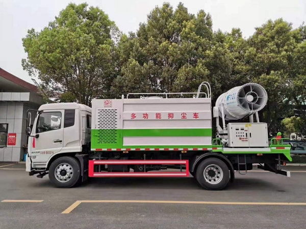 2.抑塵裝置采用國(guó)內(nèi)知名品牌,成霧量大、粒徑范圍大。霧炮噴射距離遠(yuǎn),且能實(shí)現(xiàn)俯仰角度可調(diào),滿足不同噴射距離工況的需求。使用副發(fā)動(dòng)機(jī)驅(qū)動(dòng),傳動(dòng)效率高。操作簡(jiǎn)單,各功能通斷控制為電控氣動(dòng),一鍵切換,無(wú)需手動(dòng)。