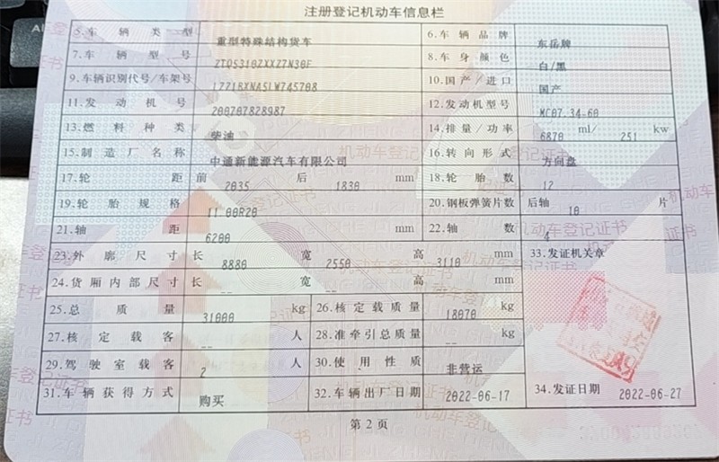 2022年6月,重汽豪沃前四后八勾臂垃圾車,國六,31噸,德國曼340馬力,10檔變速箱(帶高低檔),
